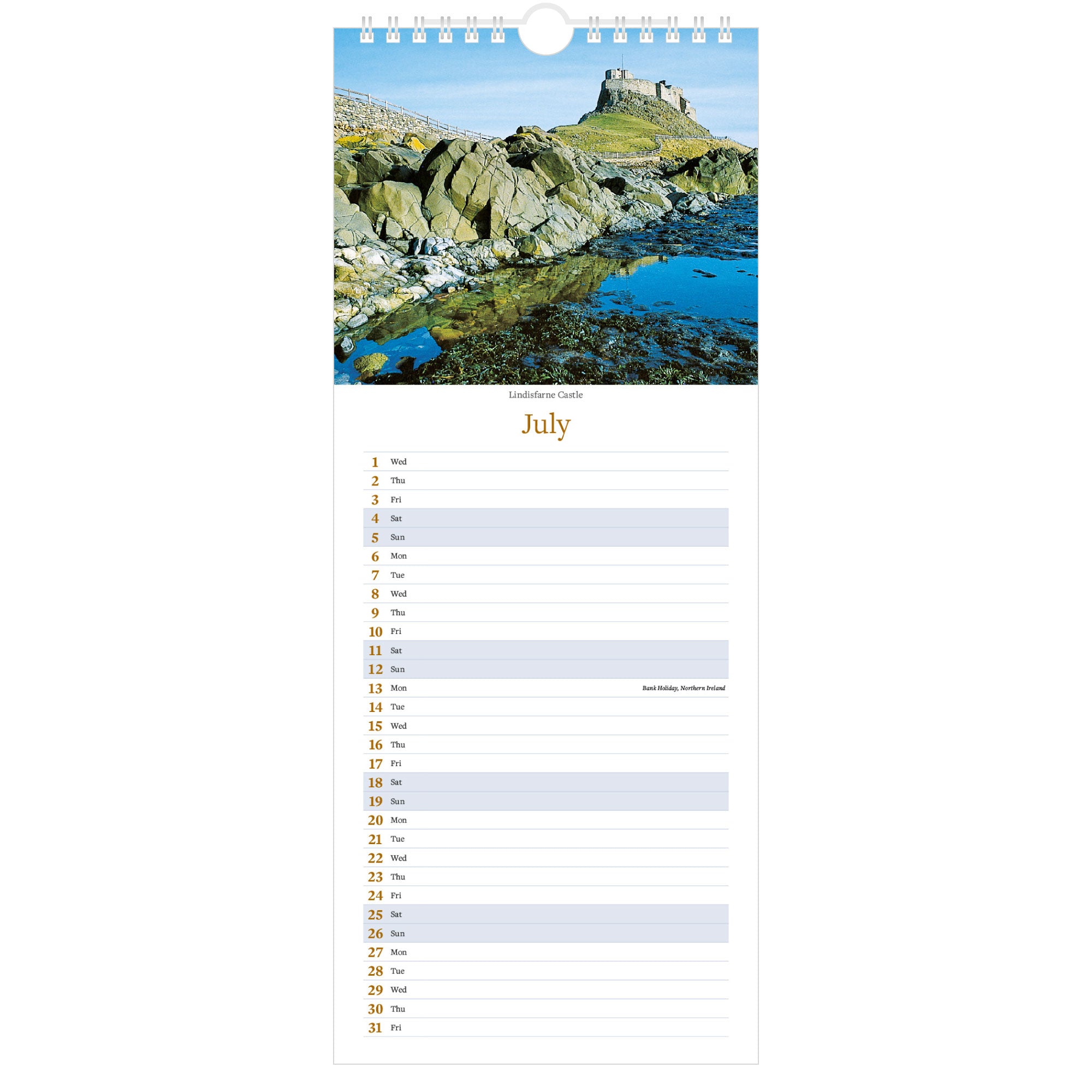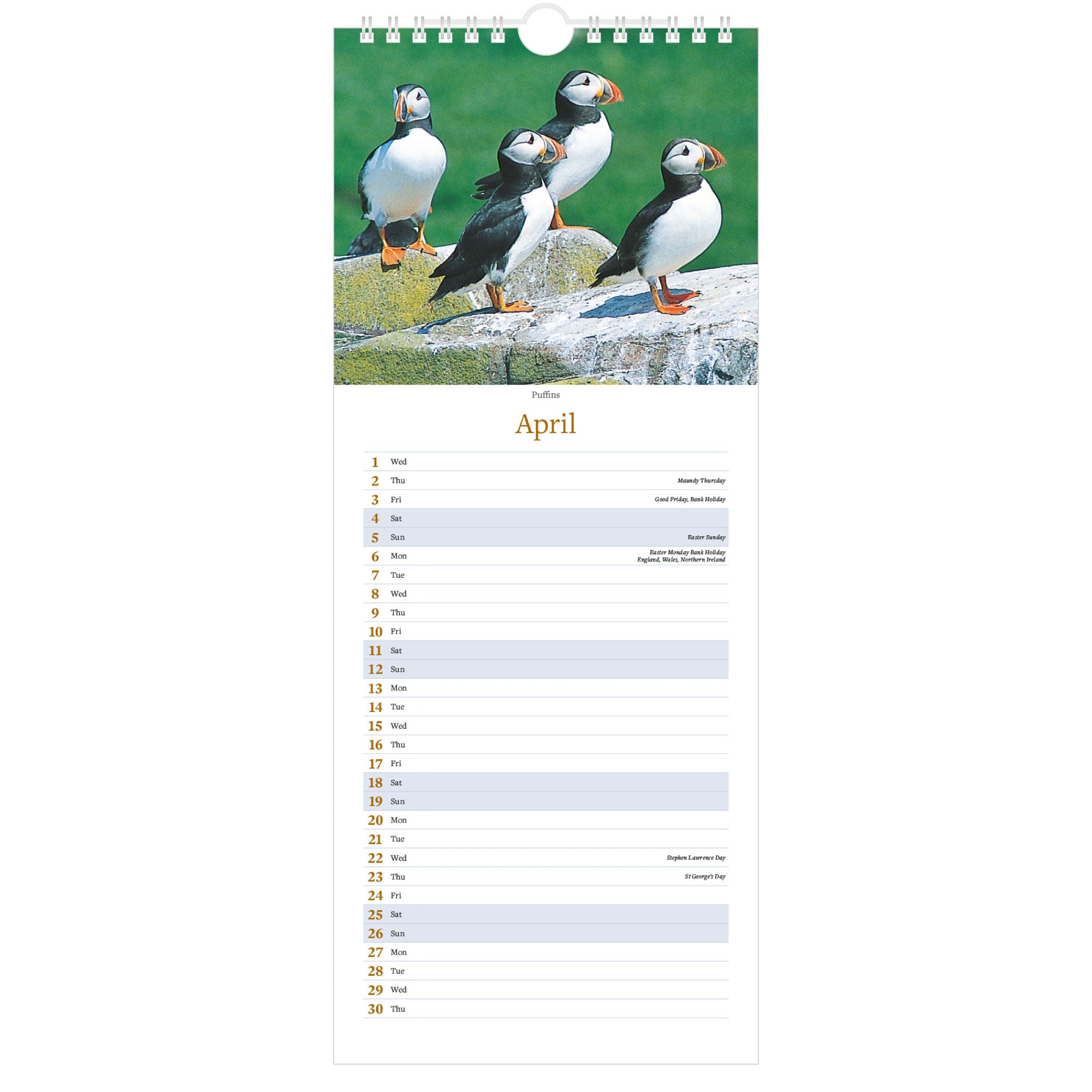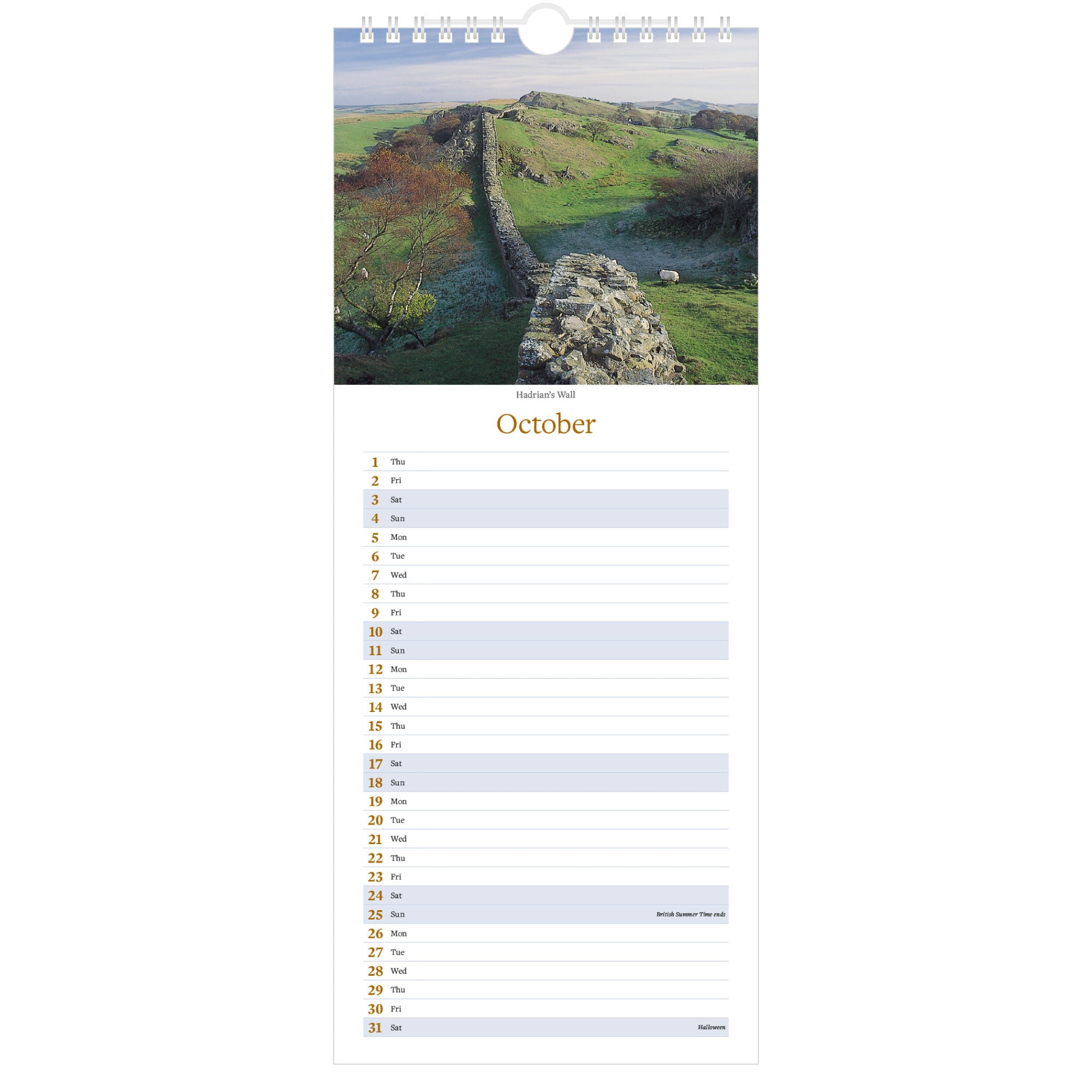 This month-to-a-page slim format calendar has plenty of space to mark important anniversaries, appointments and reminders. National UK observances, holidays and celebrations are included.