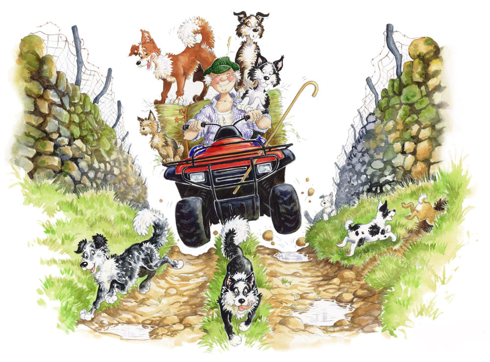Country Comicals is a range of watercolour illustrations by Yorkshire artist Linda Birkinshaw showing the funny side of country life. Featuring a gang of lovable animals, the images are available across a range of gifts.