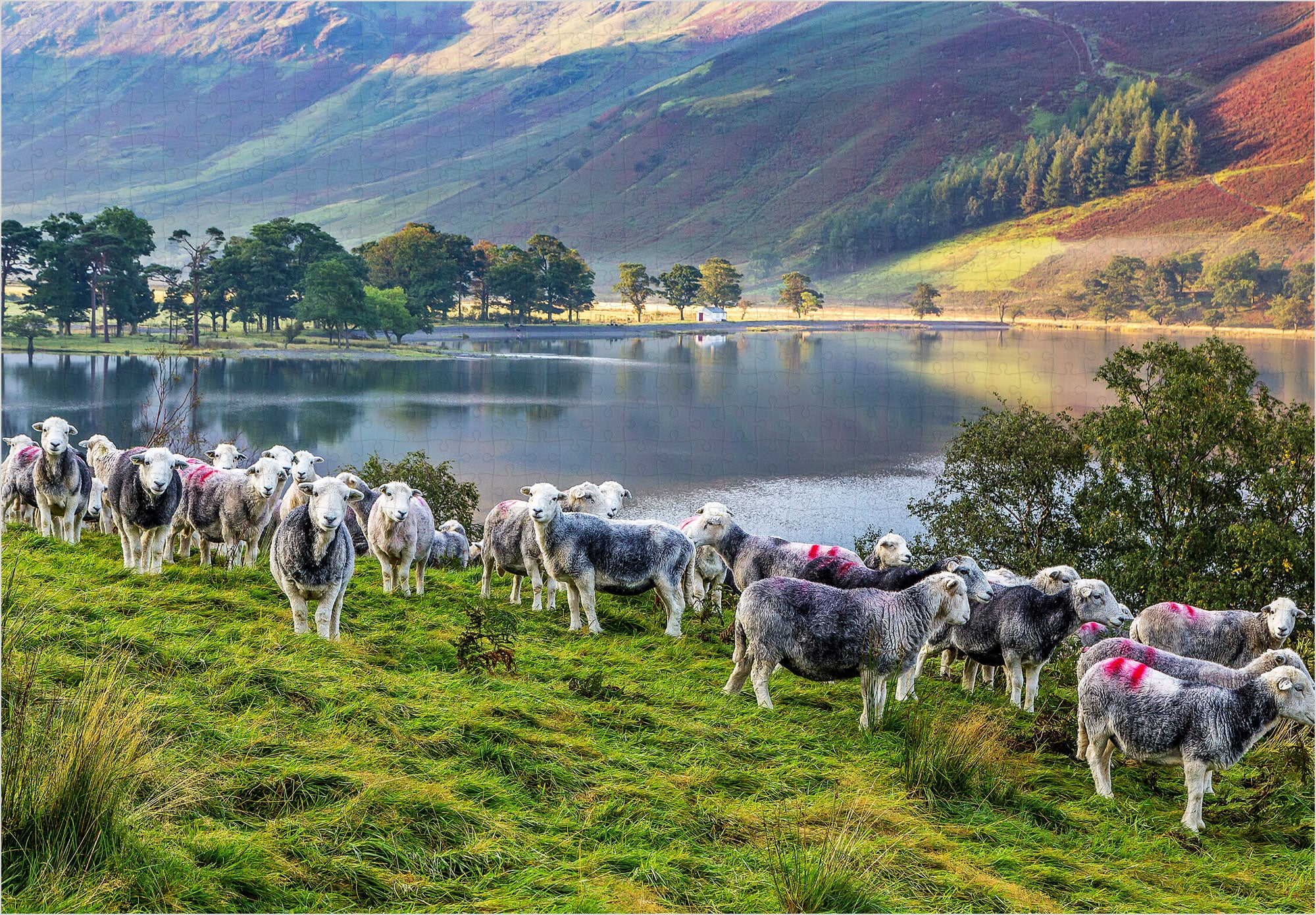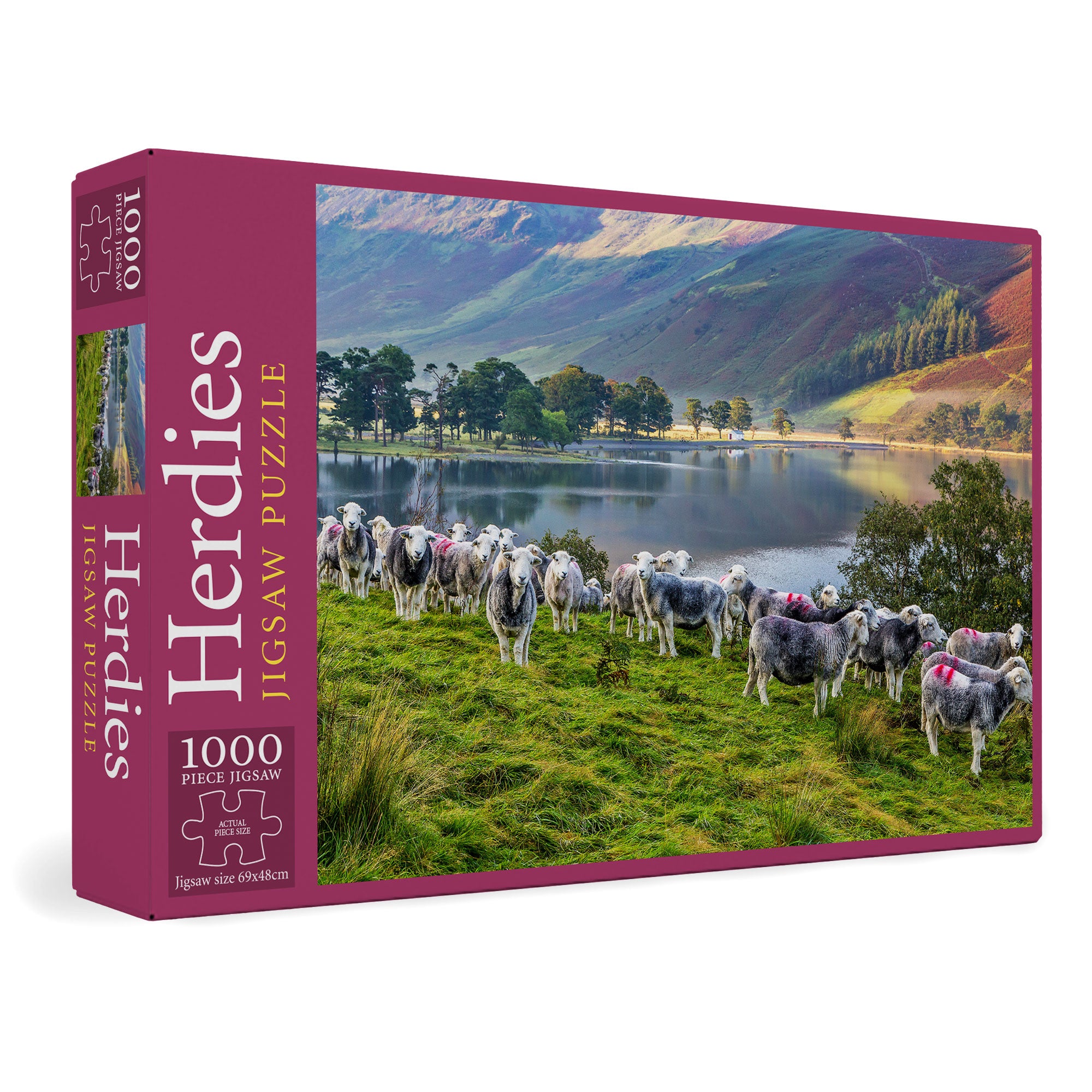 A premium quality 1,000 piece jigsaw puzzle featuring a superb picture of Lake District Herdwick Sheep. Photographed by the side of Buttermere, these Herdwicks are free to roam the pastures and fells around Buttermere and Crummock Water.