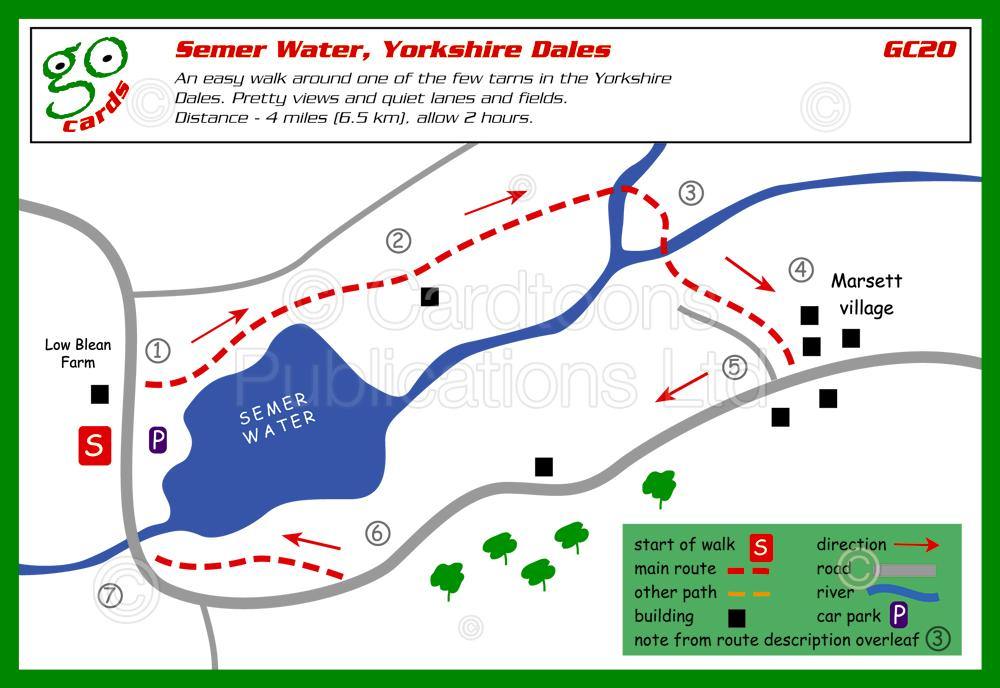 This Go Card features an easy walk around one of the few tarns in the Yorkshire Dales. Pretty views and quiet lanes and fields.