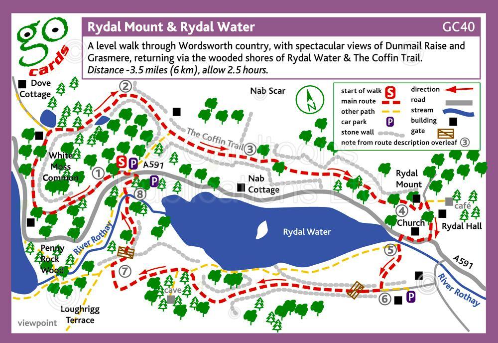 This Go Card features a level walk through Wordsworth country, with spectacular views of Dunmail Raise and Grasmere, returning via the wooded shores of Rydal Water & The Coffin Trail.