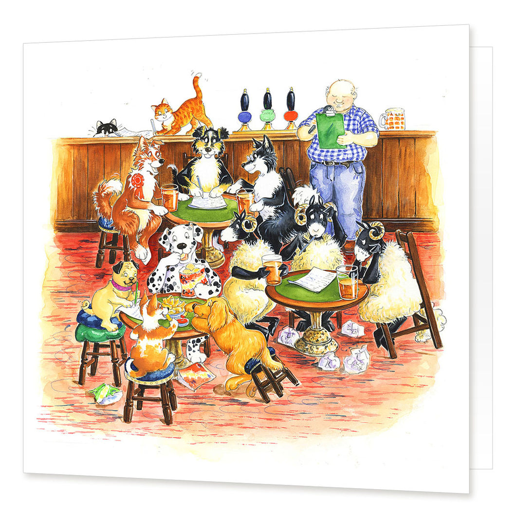 "Pub Quiz Pugs" Greetings Card