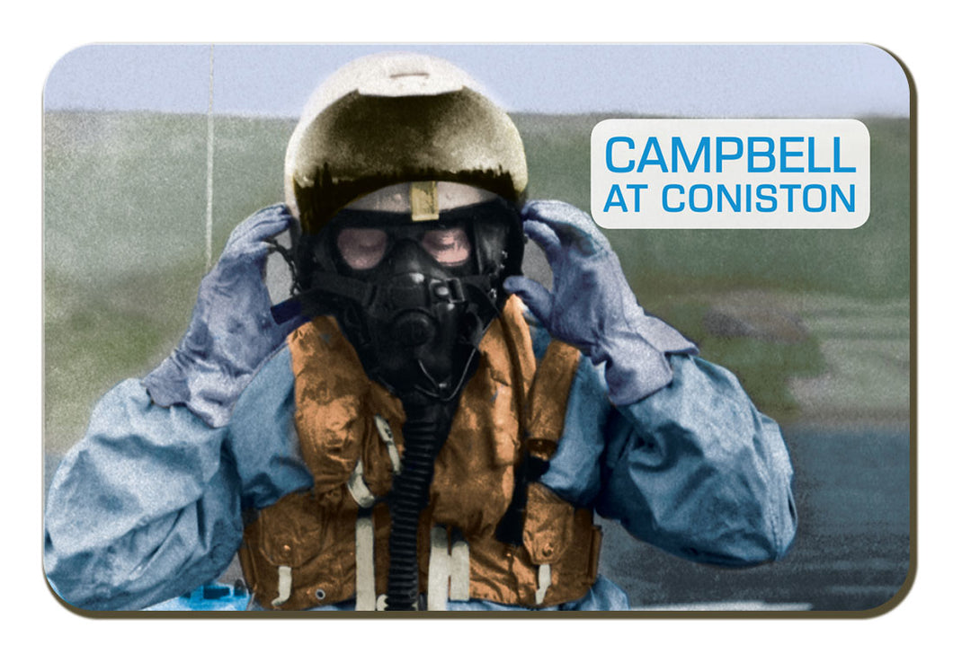This melamine fridge magnet from the Landmark range features an image of Donald Campbell at Coniston.