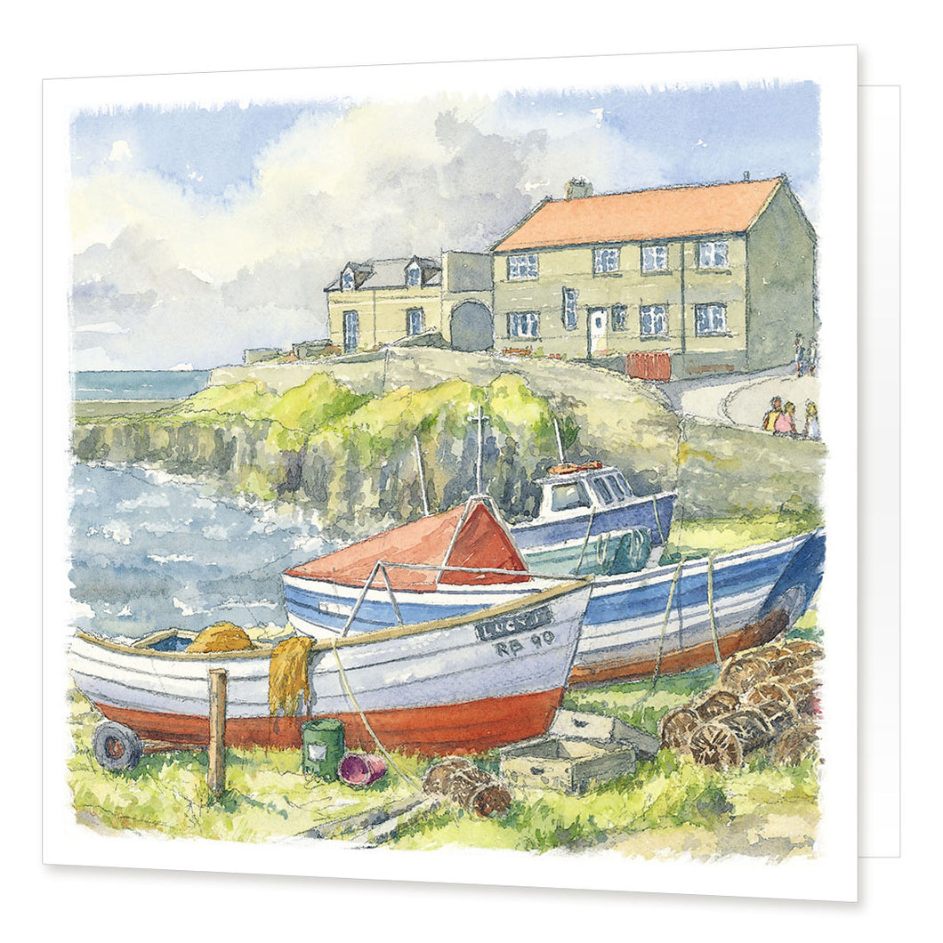 This greeting card features a view of Craster Harbour which is also available as an art print.