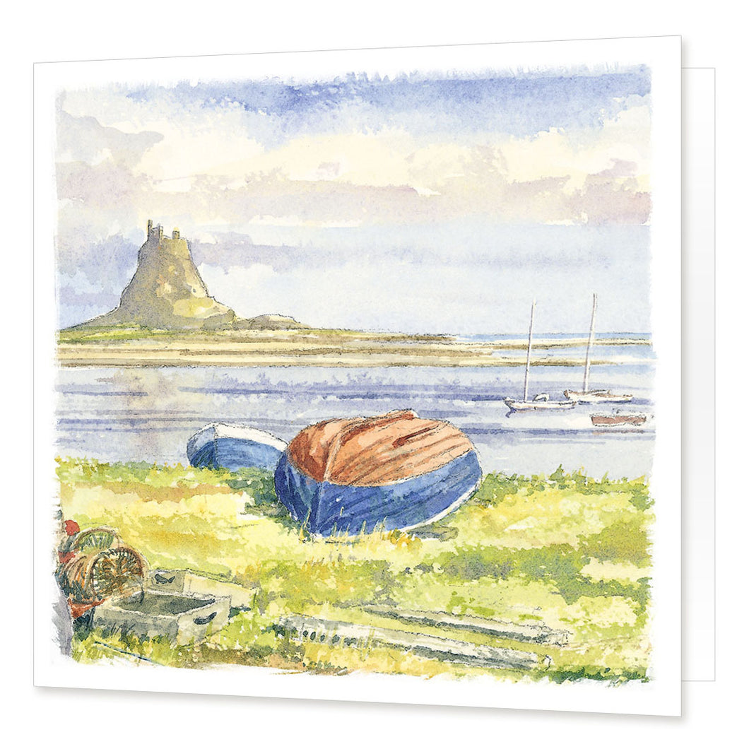 This greeting card features a view of Lindisfarne Castle which is also available as an art print.