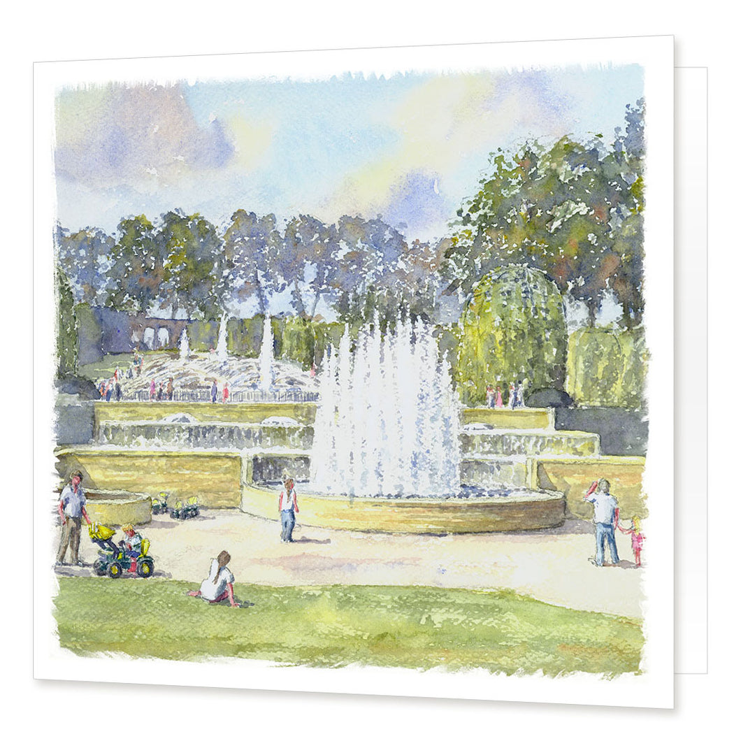 This greeting card features a view of Alnwick Garden which is also available as an art print.