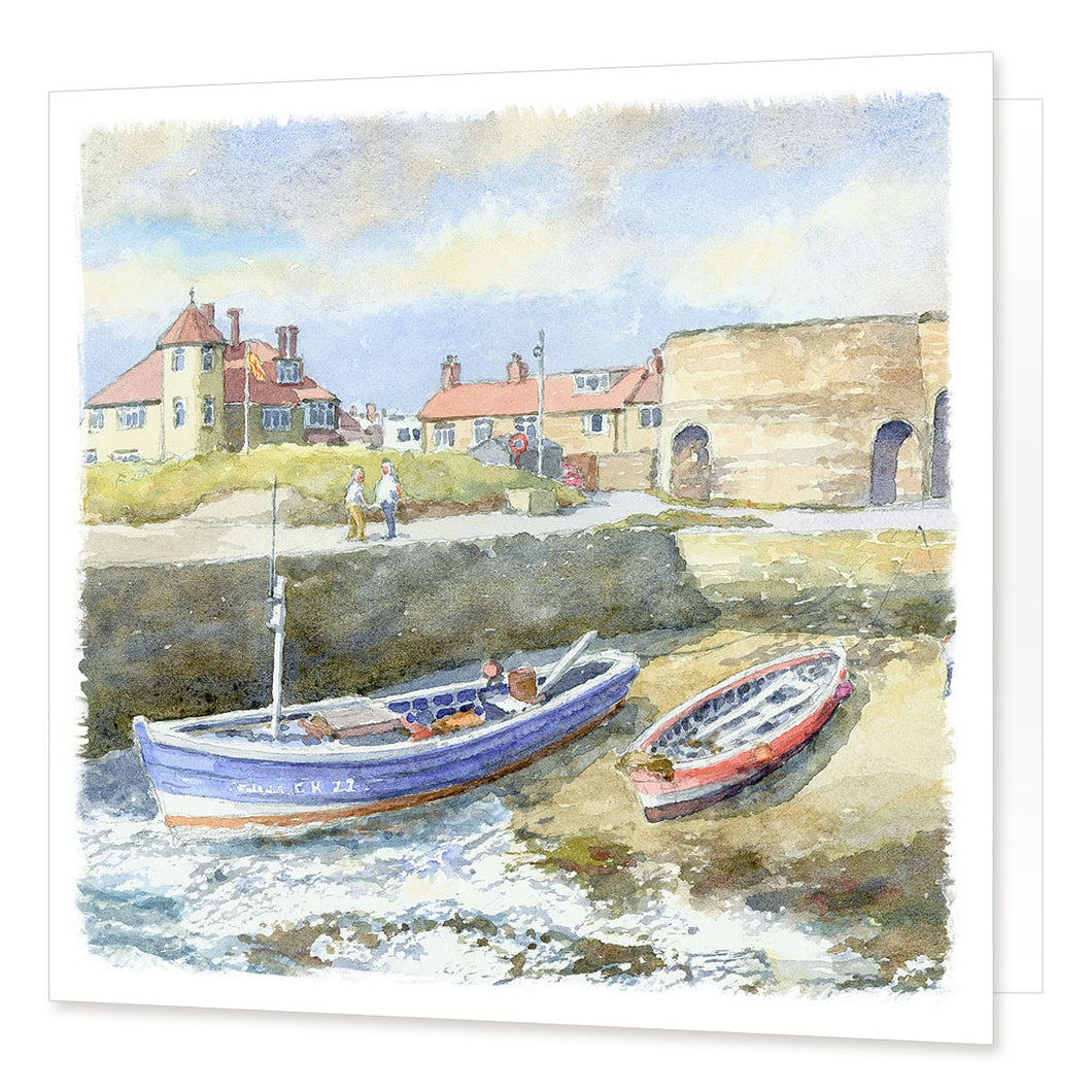 This greeting card features a view of Beadnell Harbour which is also available as an art print.