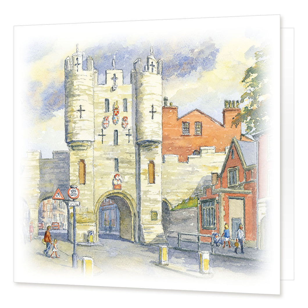 This greeting card features a view of Micklegate Bar, York which is also available as an art print.