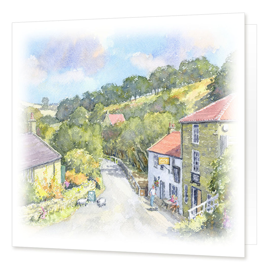 This greeting card features a view of Beck Hole, Goathland which is also available as an art print.