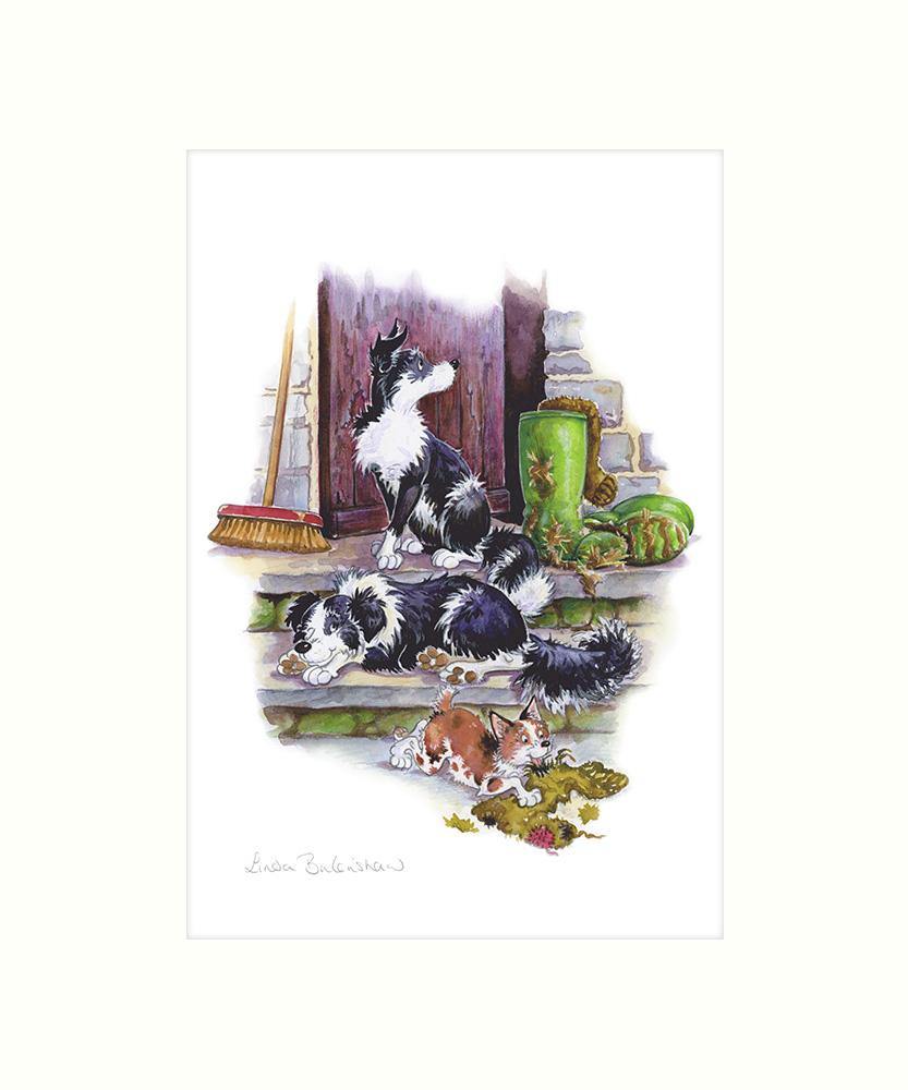 This mounted art print is one of the Country Comicals range of watercolours by artist Linda Birkinshaw. The range features a lovable cast of animals and humans experiencing the funny side of country life.