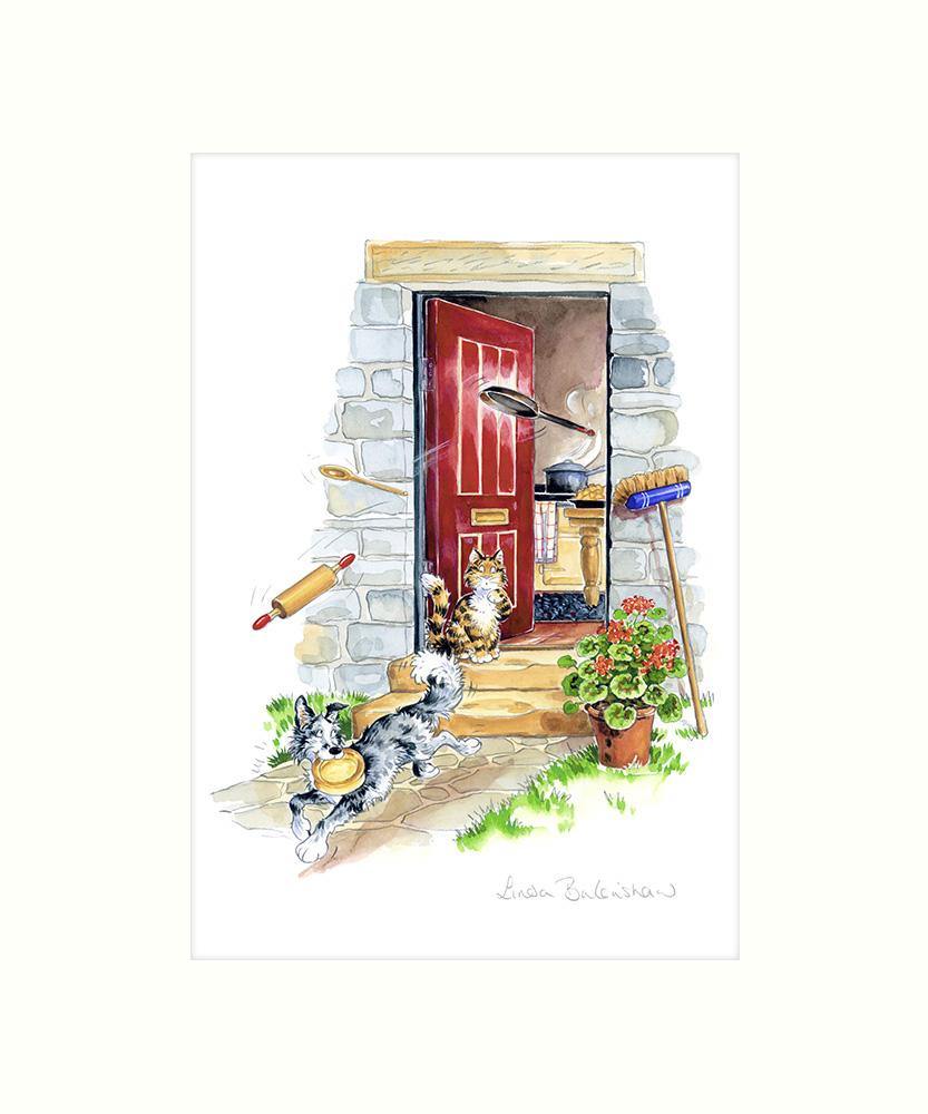 This mounted art print is one of the Country Comicals range of watercolours by artist Linda Birkinshaw. The range features a lovable cast of animals and humans experiencing the funny side of country life.