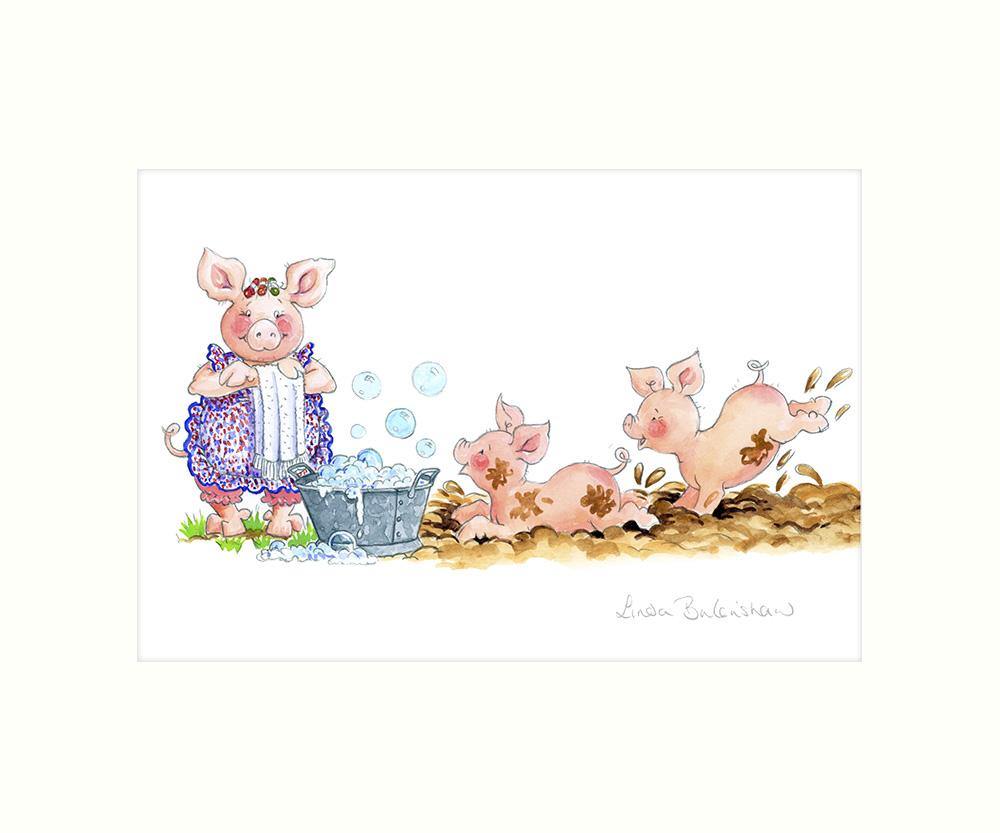 This mounted art print is one of the Country Comicals range of watercolours by artist Linda Birkinshaw.