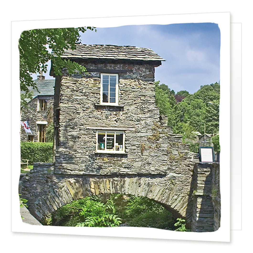 This greeting card features a picture of the famous Bridge House in Ambleside.